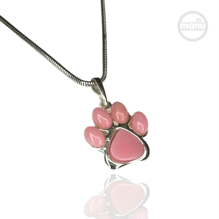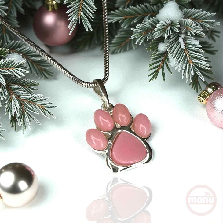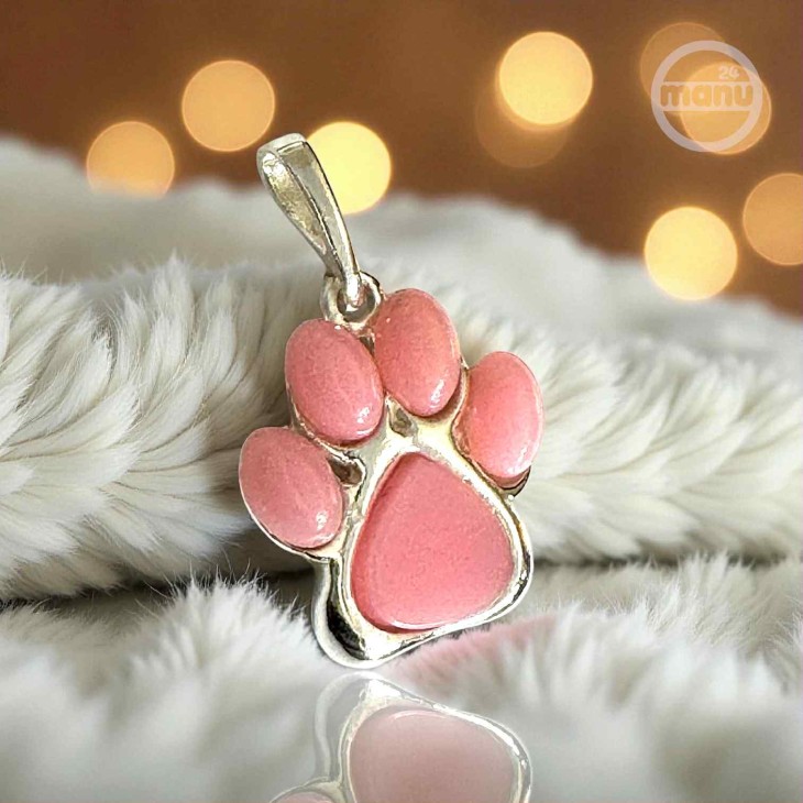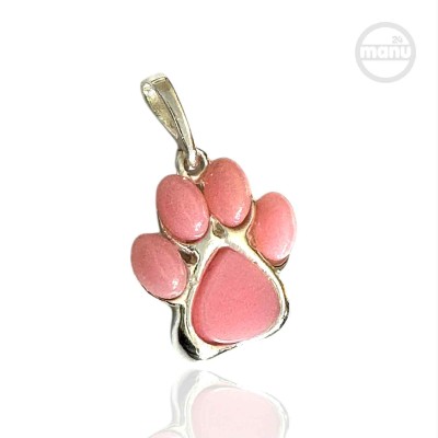 Srebrna zawieszka 925 w kształcie psiej lub kociej łapy z różowym agatem.