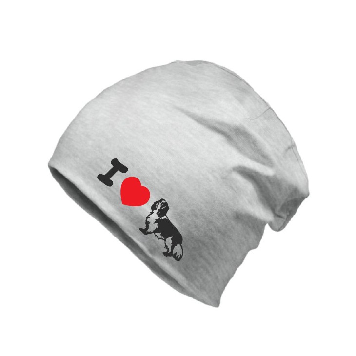 Ciepła czapka jesienna i zimowa z motywem psa rasy Cavalier.