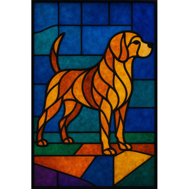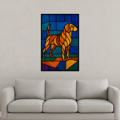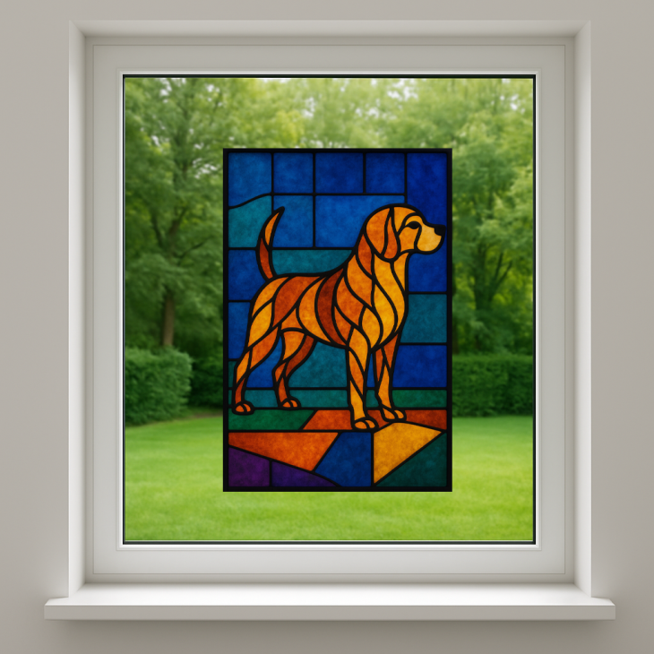 Witraż akrylowyi wykonany metodą nadruku UV to nowoczesna dekoracja inspirowana tradycyjnymi witrażami. Lekki, trwały i odporny na promieniowanie UV – idealny do zawieszenia w oknie wewnątrz lub na zewnątrz. Autorski projekt, unikatowy produkt dla miłośników psów i nowoczesnej sztuki dekoracyjnej.