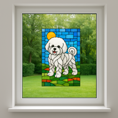 ✨ Witraż akrylowy „Bichon frise” – wyjątkowa dekoracja światłem i kolorem