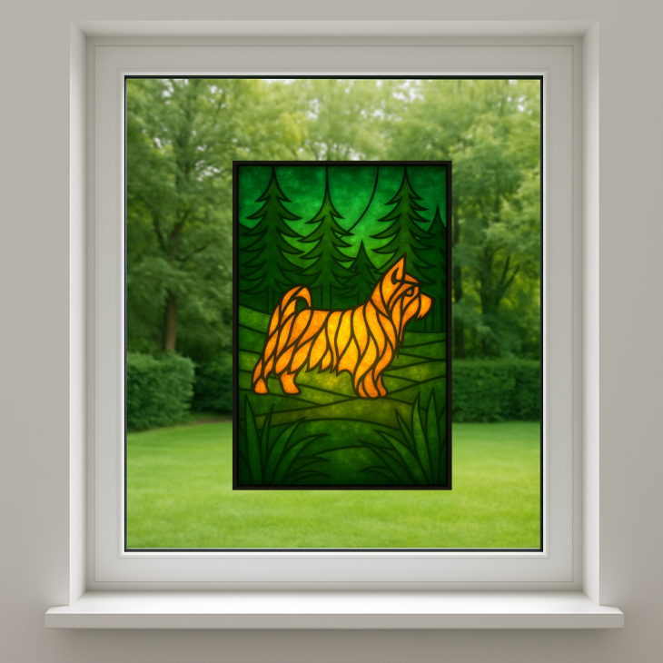 Witraż akrylowyi wykonany metodą nadruku UV to nowoczesna dekoracja inspirowana tradycyjnymi witrażami. Lekki, trwały i odporny na promieniowanie UV – idealny do zawieszenia w oknie wewnątrz lub na zewnątrz. Autorski projekt, unikatowy produkt dla miłośników psów i nowoczesnej sztuki dekoracyjnej.